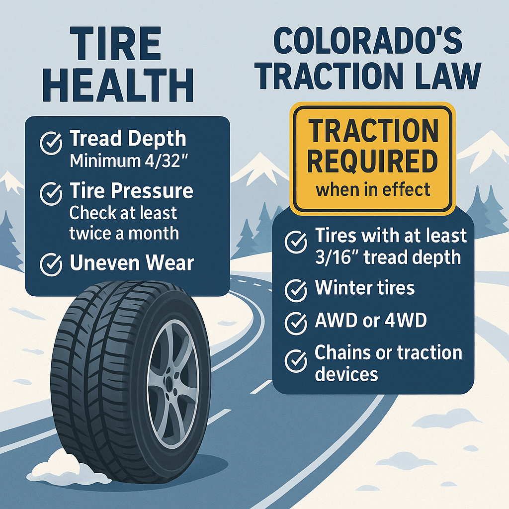 This Week at Ridgeline Automotive: Tire Health & Colorado’s Traction Law—Are You Ready?